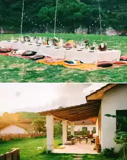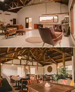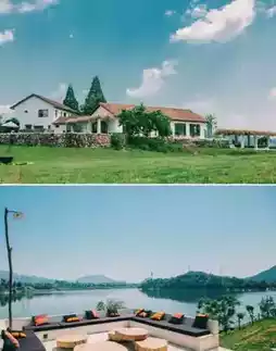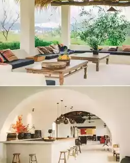 1950s buildings have been transformed into relaxing vacation retreats. Locally sourced recycled red tiles and weathered green brick walls complement Moroccan textiles and vintage furniture, creating a "borderless rustic" ambiance. The designer spent seven years perfecting every detail, ensuring each window frames the stunning lake and mountain views, and even the air is filled with the sweet scent of peaches and wild lilies.