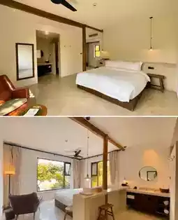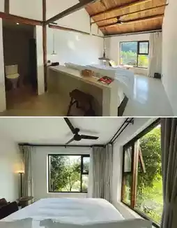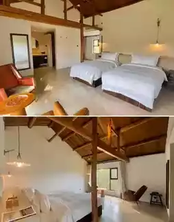 The 40 guest rooms are spread across seven separate buildings. Natural wood benches, hand-woven carpets, and antique brass locks, combined with simple and elegant color schemes, evoke the warm nostalgia of a grandmother's home. Breakfast includes homemade bread, peanut butter sandwich cookies, and freshly ground soy milk. Dinner features local ingredients such as Qiandao Lake fish head soup, free-range chicken casserole, and freshly picked seasonal vegetables, each bite bursting with rural charm. For a truly special experience, enjoy an afternoon tea served on a wooden tray with seasonal fruits and handmade pastries. The butler will find you the perfect spot to savor the moment.