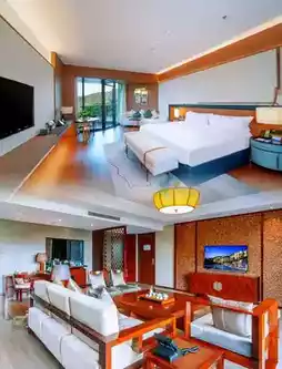 The hotel is perfectly situated in Qiandao Lake, offering spectacular views everywhere. Whether it's the sunrise at dawn or the sunset in the evening, you can easily capture the most beautiful moments.