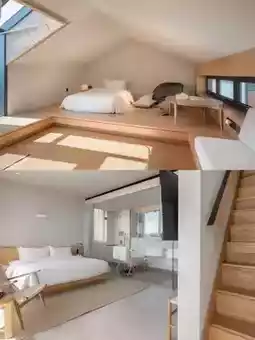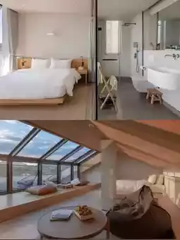 The architecture is uniquely stylish, combining modern simplicity with local rustic charm. The staggered buildings complement the surrounding natural scenery, making you feel like you’ve stepped into a poetic fairy tale.