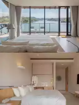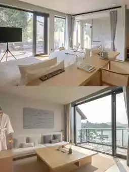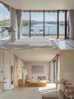Hidden deep in Qiandao Lake, this Hui-style architectural complex features white walls and black tiles paired with floor-to-ceiling glass, preserving the charm of Jiangnan while blending modern minimalism. The best part is the loft rooms with starry skylights, where you can lie in bed and watch the Milky Way at night 🌌 Each room has a private viewing terrace with excellent privacy, and the morning mist over the lake will gently wake you up~