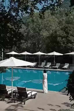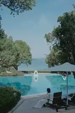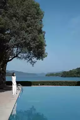 The infinity pool seamlessly connects with the lake view, its water clear as a mirror, making you feel as if you are merging with the lake while swimming.