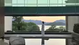 The guest rooms feature a spacious natural wood style. The moment you open the balcony door, the blue of Qiandao Lake flows in like silk, with distant islands like emeralds dotting the lake surface.