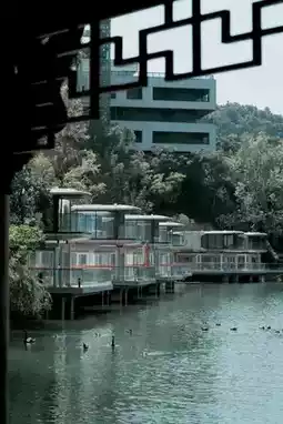 Passing through the lobby, amidst the mountain and water scenery, an inward-facing Oriental courtyard seems to open up another side of Qiandao Lake for me.