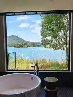 Bathtub faces the floor-to-ceiling window, enjoy the lake view while bathing
