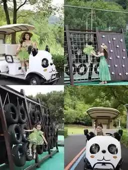 Cute electric car shaped like a panda, An’an drove it around half the lake, fully immersed~ There’s also an outdoor non-motorized playground nearby! (Electric car staff off duty at 17:00, go early)