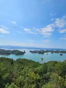 Visitors can reach the island by taking a scenic area cruise or chartering a yacht. Alternatively, they can take a cable car from the nearby pier to ascend the mountain. Once on Meifeng Island, the viewing platform offers a breathtaking view of the iconic landscape of Qiandao Lake. The dense and interwoven islands on the lake resemble plum blossoms or stars in the Milky Way, presenting a magnificent and stunningly beautiful scene.