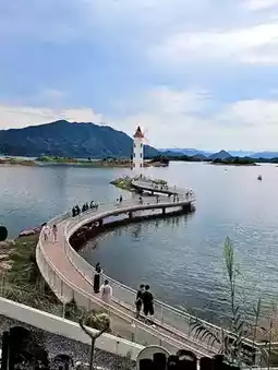 The popular Qiandao Lake lighthouse in Hangzhou is the "Heart of the Thousand Islands" lighthouse, located on the shores of Qiandao Lake in Hangzhou, China. It's a new attraction integrating cultural and creative tourism. The lighthouse's stunning scenery and stunning photo ops make it a popular photo spot. The lighthouse is truly stunning, and stopping there for afternoon tea and a breathtaking view of the lighthouse and the surrounding Thousand Islands is truly a delight!