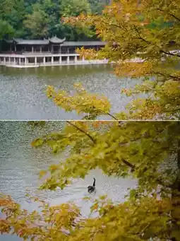 ③ Lakeside Pavilion (classic composition of black swans + ancient architecture)