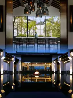 Covering an area of 132 acres, the hotel has 83 villas, each enjoying an unbeatable lake view. Taking the shuttle to the rooms, you pass by standalone villas on both sides. The smallest suite is 80 square meters. The new Chinese-style design exudes luxury and elegance, with spacious areas ensuring guests' privacy. It is ideal for both family trips and gatherings with friends.