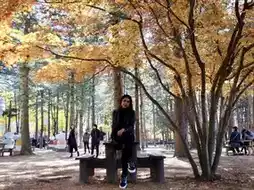 During spring, the weather was cool, around 10 degrees. It was very pleasant to walk around because the atmosphere was great. The leaves were changing colors beautifully, especially the maple leaves. The shades of red and orange were so soothing to the eyes.