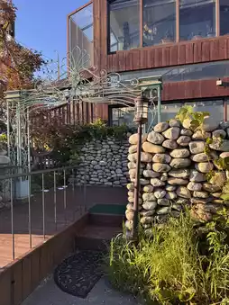 From the exterior to the garden and interior, the restaurant is designed with a nature-friendly concept, reminiscent of a dining spot nestled in the forest.