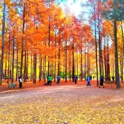 In autumn, Nami Island is like a painting, with its golden ginkgo tree-lined paths resembling a carpet of gold and a romantic atmosphere that is simply enchanting. The best time to see the autumn foliage is from late October to mid-November. If departing from Seoul, you can take the Gyeongchun Line subway to "Nami Island Station," walk about 10 minutes to the pier, and then take a 5-minute ferry ride to the island. Alternatively, you can take a bus from the East Seoul Bus Terminal to the Nami Island entrance. On the island, you can rent a bicycle or explore on foot. A recommended route is Entrance Plaza → Ginkgo Tree Lane → Autumn Foliage Tunnel → Art Zone → Lakeside Path. Don't miss the filming location of "Winter Sonata" and the Garden of Letters. Visiting in the morning is recommended, and bringing light snacks for a picnic allows you to enjoy the tranquility of autumn. The entrance fee, which includes the ferry ride, is about 15,000 won. Wear comfortable shoes and pay attention to the ferry schedule, as the last ferry departs around 6:00 PM. The autumn scenery of Nami Island is poetic, and spending a day leisurely exploring feels like stepping into a painting.