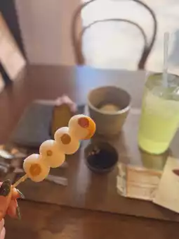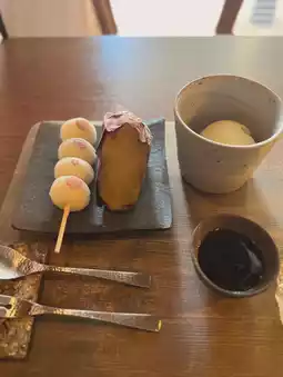 Imo Mitsu Mitarashi Dango with vanilla😍🍡🍨