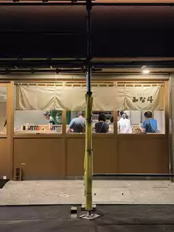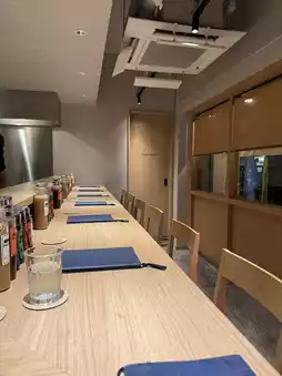 The clean, stylish interior with L-shaped counter seating creates a relaxed atmosphere.