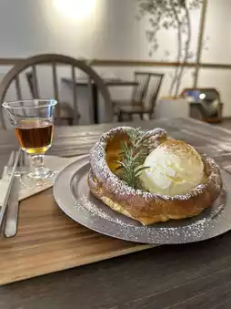 The Dutch baby, which is rare in Fukuoka, was voluminous and delicious.