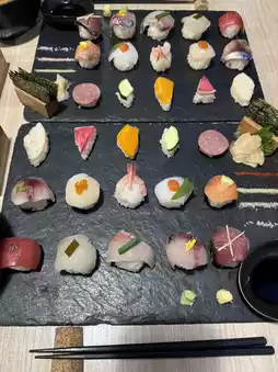 The temari sushi features 10 types of fresh fish toppings and 5 types of vegetables like lotus root. In addition to soy sauce, matcha salt, cherry blossom salt, rock salt, and Korean chili powder are provided, along with seaweed for hand-rolling, allowing you to enjoy a variety of flavors.