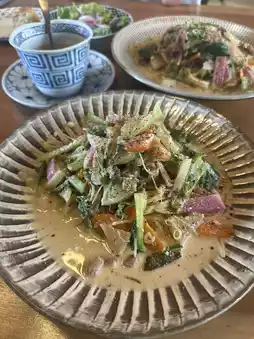 The noodles were paired with homemade pancetta and plenty of fresh Itoshima vegetables❣️