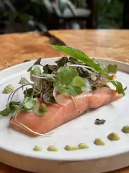 The salmon was served with two types of sauces: avocado and mayonnaise. ♡