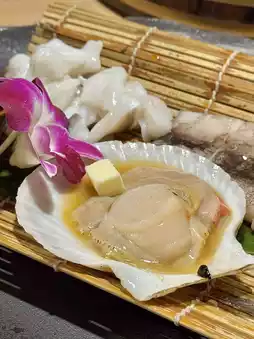 The scallops are served whole, so they are grilled on a charcoal grill as they are, making them plump.