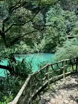 Crystal-clear pools and forested paths that create a peaceful, fairy-tale-like atmosphere