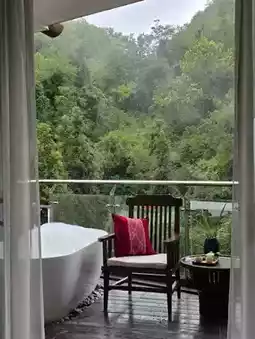 The most striking thing is the sheer scale of the grounds. They're so vast that internal transportation is used for easy transportation. Everything you need for a truly relaxing stay is available: a modern gym, two swimming pools, four restaurants offering a variety of cuisines, a minimarket, barbecue areas, and entertainment areas. The grounds also boast a small zoo and tea plantations with a cozy tea house where you can enjoy the tranquility.