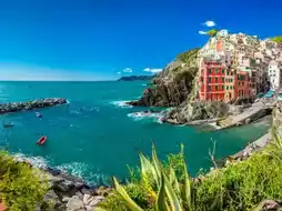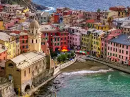 Cinque Terre is a national park and five fishing villages along the Mediterranean coast in the Liguria region of Italy. Known for their stunning scenery, the colorful houses cascading down the cliffs and hillsides, the lively local atmosphere of the fishermen, and the local produce, including wine, olive oil, and fresh seafood.