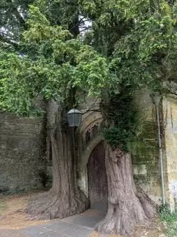 Later, I made my way to St. Edward’s Church in Stow-on-the-Wold, drawn by its famous doorway framed by ancient yew trees. In the fading daylight, the trees looked almost like guardians wrapped around the arched door. Inside, the church carried centuries of history, but it was that doorway that truly captured my imagination.