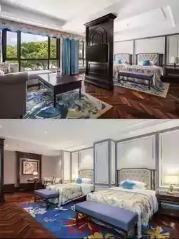 For those who prefer opulence, the "Water Blossom" series of European-style rooms delivers. Every detail here reflects sophistication, from the wall and bed decor adorned with irises—the floral emblem of Lakeside Elegant Courtyard—creating a romantic and cozy ambiance. At night, lying on the plush bed while gazing at the lake through floor-to-ceiling windows fills your heart with peace. 🌟