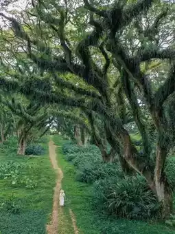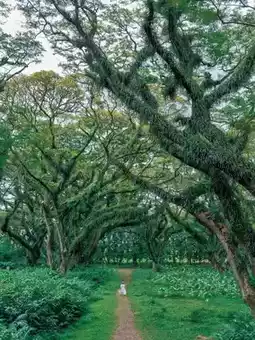 The soul of this place lies in the trembesi and banyan trees over a hundred years old, standing tall and majestic, their thick branches wrapped in dense moss and vines, resembling a natural sculpture garden. Sunlight struggles to penetrate the layered canopy, casting mottled shadows on the ground that flow like a dynamic "magic circle" with the breeze. Standing beneath these giant trees, the contrast between human smallness and nature’s grandeur is striking, and every snapshot looks like it has a cinematic filter.