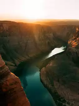 As the first rays of morning sunlight descend, the canyon's hues gradually transform from dark red to golden yellow. In the distance, the Colorado River shimmers at the canyon's bottom like a turquoise ribbon. As time passes, light and shadow play across the rock walls, transforming the entire Grand Canyon into a constantly shifting painting.