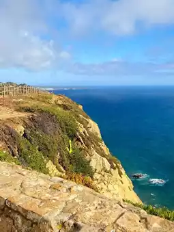 Taking a bus from Sintra along winding roads for about 40 minutes—after crossing the hills, the vast blue horizon of the Atlantic Ocean unfolded before my eyes. This is Cabo da Roca, the westernmost point of the European continent. A stone marker engraved with the words of Portuguese poet Luís de Camões, "Here, the land ends, and the sea begins," greeted travelers.