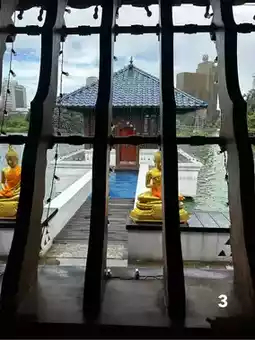 A temple floating on Beira Lake in Colombo. Originally constructed in the late 19th century as an external structure of the Gangaramaya Temple, it sank to the bottom of Beira Lake due to aging. The current structure was designed by Geoffrey Bawa in 1976. Thanks to its lightweight design, the building is now safe from sinking.