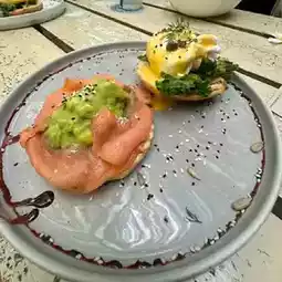 The Turkish Eggs and Red Pepper Hummus was fantastic. Amazing selection of food options, good selection of coffee, and treats to go with it. A nice atmosphere with creative vibes and a cosy brunch with friends.