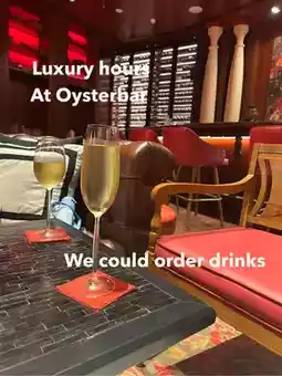 Guests can enjoy Luxury Hour from 5:30 PM to 7:30 PM. On this day, it was held at the oyster bar. You can order alcoholic drinks and snacks from the menu (they didn't have oysters). It was just the right amount for a quick drink before dinner.
