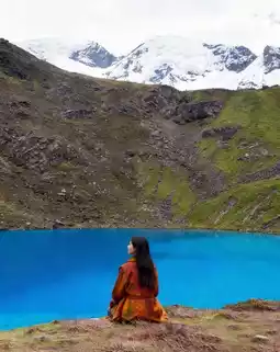 Whether it's sunny or rainy, the lake water displays a dreamy azure blue, with clarity that will redefine your understanding of "pure"! Standing by the lake, with towering snowy mountains and a deep blue sky behind you, every shot is a masterpiece 📸 (wearing bright-colored clothes is recommended for better photos)
