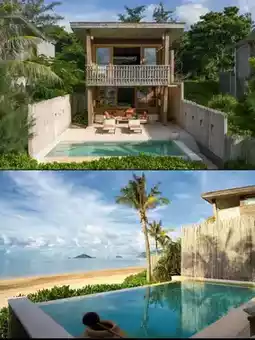 🏡The hotel boasts 50 meticulously designed villas, each featuring a wooden style that perfectly blends with the surrounding natural environment. The villas are equipped with private infinity pools, allowing you to enjoy the privacy of your space while indulging in the breathtaking views of the sea and sky. From the duplex design to the convenient access to the beach, every detail reflects luxury and convenience.🏊♂️