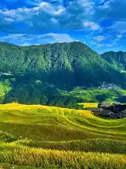 - Mid to late September: The golden peak period! The rice ears are fully yellow, and when morning mist drifts over the ridges, the terraces look like golden ladders reaching the clouds, nearly one month earlier than the Longji Terraces’ peak yellow season.