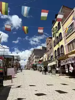 Copacabana rests where sky meets water, on the shores of sacred Lake Titicaca. The blue stretches endlessly, kissed by sun and silence. Boats drift toward Isla del Sol, carrying whispers of Inca legends. In town, pilgrims climb Cerro Calvario, prayers rising with the wind. Markets bloom with color, and the basilica gleams white under the vast Bolivian sky. Here, time slows, and the lake’s ancient soul speaks in ripples and light.