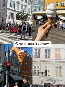 A hugely popular waffle and ice cream shop in Nyhavn. This hearty treat, featuring freshly baked waffles topped with a generous amount of ice cream, is the perfect treat between sightseeing trips. 🍦🧇