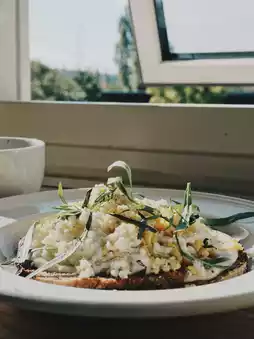 I took a bus specifically to visit Lille Bakery, a spot beloved even by locals. This bakery is renowned for its use of local organic ingredients and partnerships with like-minded farms. The breakfast menu isn't extensive, with prices ranging from 38–95 DKK. If you're looking for something simple, you can also order just a piece of bread. After much deliberation, I finally chose the Egg on Toast paired with a pot of Herbal Tea. The sourdough bread was topped with finely scrambled eggs, with a layer of slightly tangy sauce (probably a special mayonnaise?) in between. The aroma and texture were perfectly balanced.