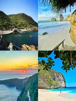 Inland, dense forest trails wind through the area. Tall kauri trees reach up to the sky, with thick fallen leaves underfoot making a soft rustling sound. Along the way, rare ferns, lively birds, and wildflowers create a natural feast.