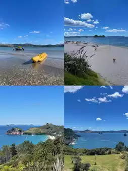 The beaches here are unique. Hot Water Beach is a magical gift from nature, with warm natural spring water flowing under the sand at specific times of the day. Visitors can dig with a small shovel to create their own hot spring bath, relaxing in the gentle waves and warm sunshine. Hahei Beach is even more pure, with soft white sand that feels like walking on clouds; the clear blue water and sky create a stunning coastal scene, perfect for sunbathing and water activities.