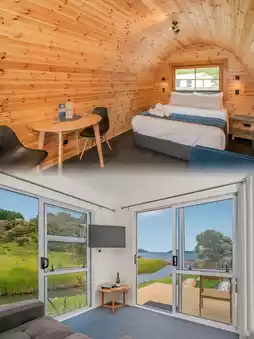 Coromandel Shelly Beach Holiday Park is located on a picturesque coastline. From the room's window, the azure blue sea and golden sands complement each other perfectly. Free from the hustle and bustle of the city, only the sound of waves lapping against the shore and the calls of seabirds can be heard, creating an unprecedented sense of tranquility and harmony.