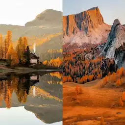 β Capture the rose-colored peaks 1 hour before sunset (Dolomites, also known as "Rose Mountains")
