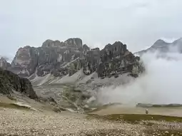 At Lagazuoi, a good option is to hike through the historic WW1 tunnels up to Rifugio Lagazuoi and stay there for the night. The cable car is also an option if you have a lot of baggage, but costs 30 EUR (return) whereas the tunnels are free. Do note that you will need safety equipment (helmets, headlights) for the tunnels as they are very dark. The path is fairly easy as there are handrails but can be slippery in rain. The views at the top at Rifugio Lagazuoi make it worth it!