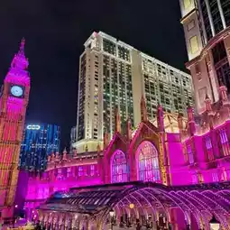 Walk through The Londoner and marvel at Big Ben replicas and red phone booths. The glowing lights and charming streets offer a taste of London in the heart of Cotai.