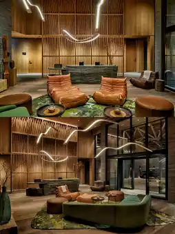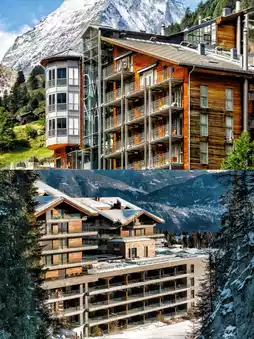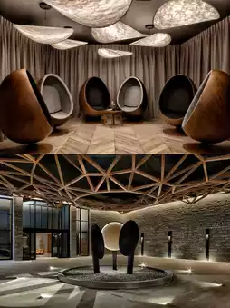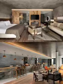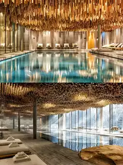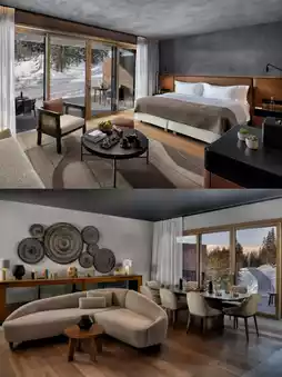 The property features 53 exquisitely designed residential-style rooms, where premium furnishings and facilities are crafted by top designers with interiors inspired by the local Alpine environment. Most apartments boast terraces with swing chairs, private cinema rooms, and traditional hammams.