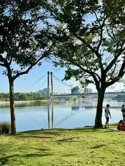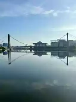 What really stood out? The lake — incredibly calm, like a polished mirror. The reflections of nearby buildings and bridges were crystal clear, creating one of the most photogenic scenes I’ve come across in Putrajaya. No ripples, no boats — just stillness and serenity.