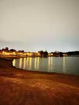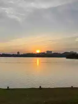 The lakeside here is calm, breezy, and the sky lights up in shades of orange and pink as the sun dips below the horizon 💖